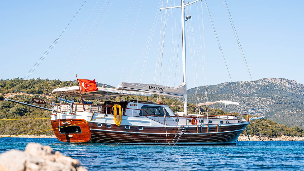 Eagle Eyes is a newly built 20m deluxe gulet that blends modern design with traditional craftsmanship, offering a relaxed and stylish way to explore the Aegean. Based in Bodrum, she welcomes up to 8 guests in four comfortable cabins and is perfectly positioned for cruising Gökova Bay, the Hisarönü and Datça coasts, or even the nearby Greek islands. With a spacious shaded aft deck, inviting outdoor saloon and a warm, contemporary interior, Eagle Eyes is ideal for families, couples or small groups looking for a private, easygoing blue cruise along some of Türkiye’s most beautiful shores.
